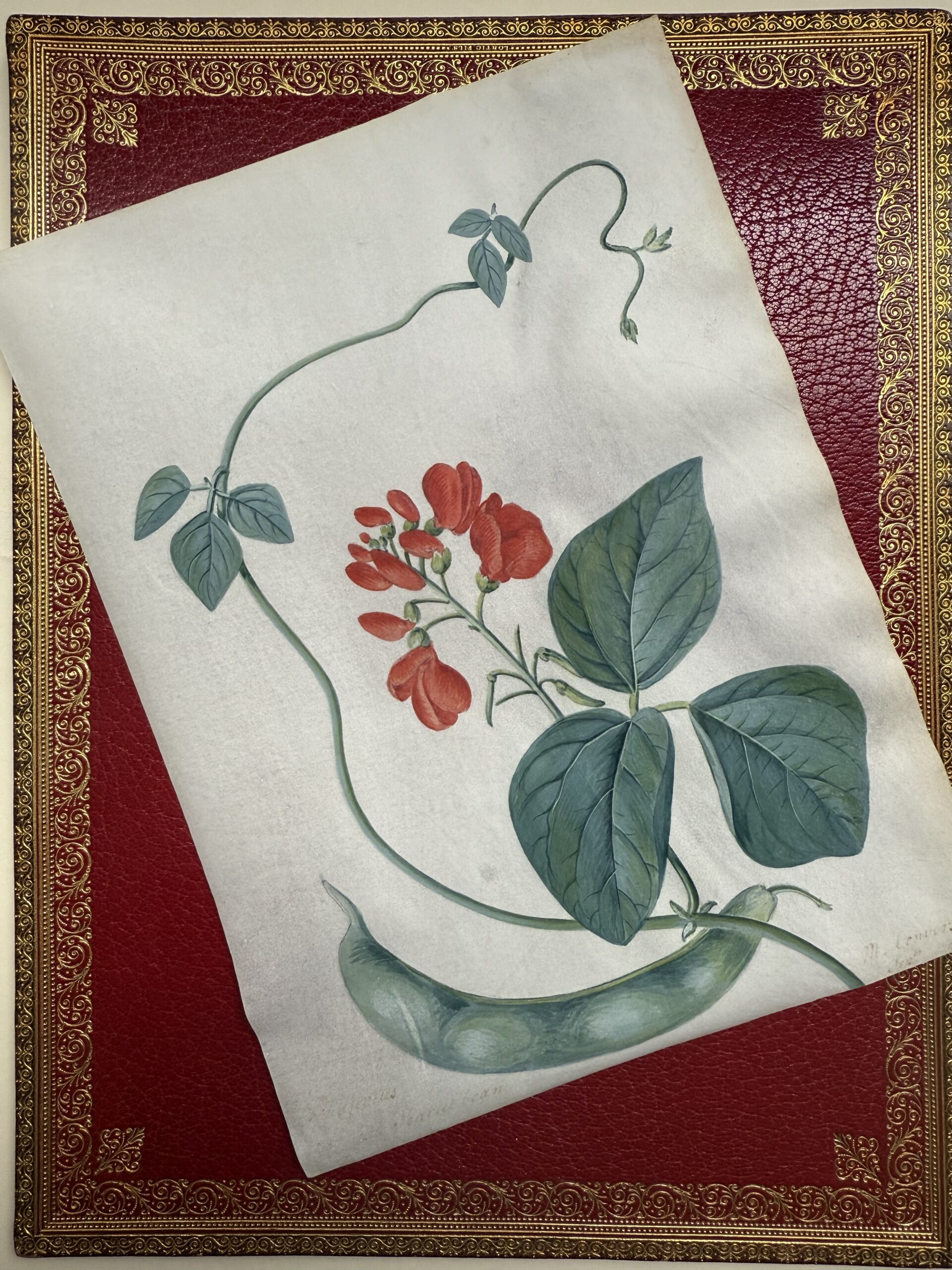 Our signed and dated depiction of ‘Phaseolus, the Scarlet Bean”, is a beautifully composed botanical illustration by the first and rarest of the three Conyers painters (c.1697-1793). Watercolor and opaque watercolor over traces of graphite with brown ink with inscriptions is on vellum – “a medium particularly favored by botanical artists for its smooth and even texture: a surface which allowed for the details of plants, flowers and foliage to be accurately depicted”.